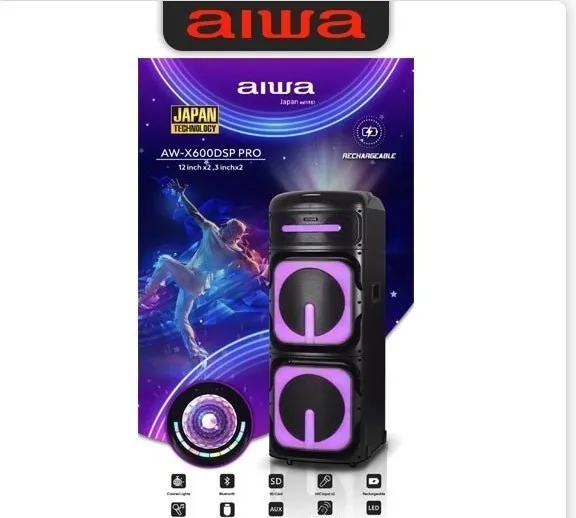 اسپیکر آیوا مدل AW-X600DSP یک اسپیکر شارژی و قابل حمل با صدای قدرتمند است که برای مهمانی‌های خانگی، مراسم، فضاهای باز و حتی اجراهای زنده کوچک طراحی شده است. این مدل به یک ساب‌ووفر ۸ اینچی مجهز شده که صدایی پرقدرت و شفاف با باس عمیق ارائه می‌دهد و با توجه به ابعاد جمع‌وجور خود، گزینه‌ای عالی برای استفاده روزمره و نیمه‌حرفه‌ای به شمار می‌رود.