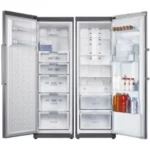 این مدل با ظرفیت ۳۸ فوت فضای بسیار جاداری برای نگهداری حجم زیادی از مواد غذایی در اختیار شما قرار میدهد. طراحی دوقلو باعث شده تا بخش یخچال و فریزر به صورت مجزا و مستقل عمل کنند؛ بنابراین کاربر میتواند هر بخش را جداگانه جابهجا یا نصب نماید.